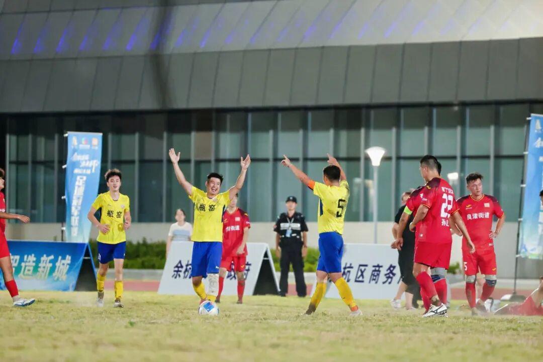 良渚街道“我‘渚’沉浮”队,他们中有的是体育老师,有的是村社工作人员,有的是公司职员,还有正值青春的大学生……白天大家各忙各的,可一到傍晚的球场,换上球衣就成了并肩冲锋的队友。